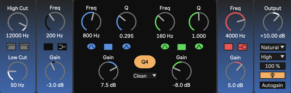 - When you first open the patch, Pro-Q4 will likely open in its default state. Open Pro-Q4’s plugin window and load the corresponding preset (e.g.