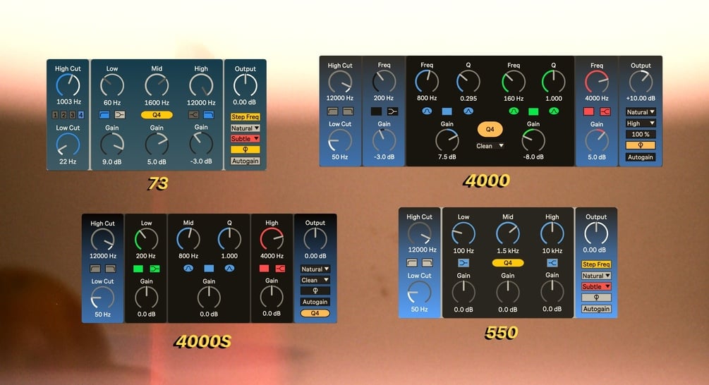 • 4000 – British four-band EQ with fixed frequencies. All the detail you’ll ever need.